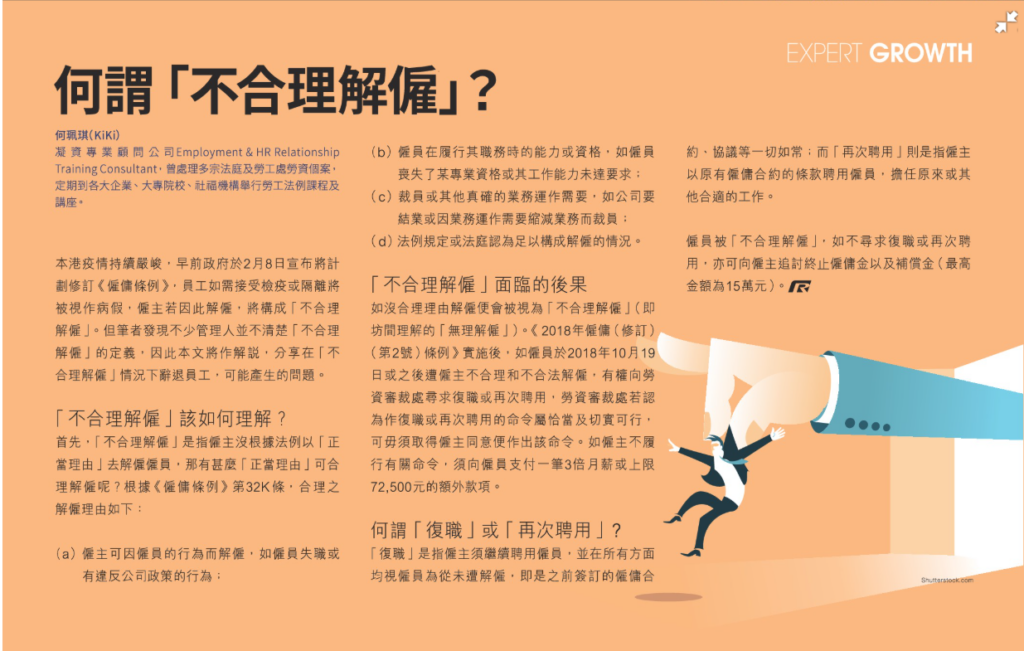 本港疫情持續嚴峻,早前政府於2月8日宣布將計劃修訂《僱傭條例》,員工如需接受檢疫或隔離將被視作病假,僱主若因此解僱,將構成「不合理解僱」。