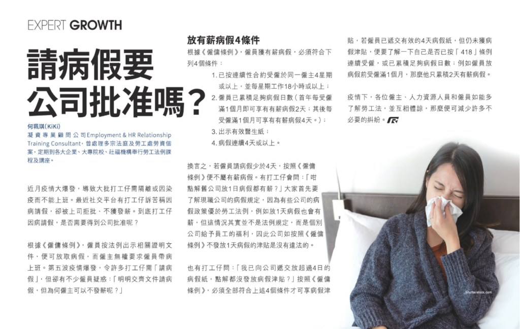 近月疫情大爆發,導致大批打工仔需隔離或因染疫而不能上班。最近社交平台有打工仔訴苦稱因病請假,卻被上司拒批、不獲發薪。到底打工仔因病請假,是否需要得到公司批准呢? 根據《僱傭條例》,僱員按法例出示相
